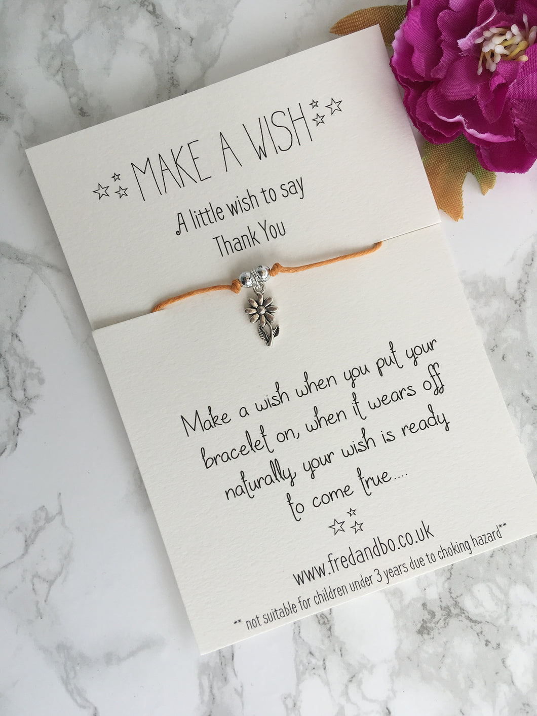 The wish bracelet comes tied around a card and is enclosed in a cello envelope.