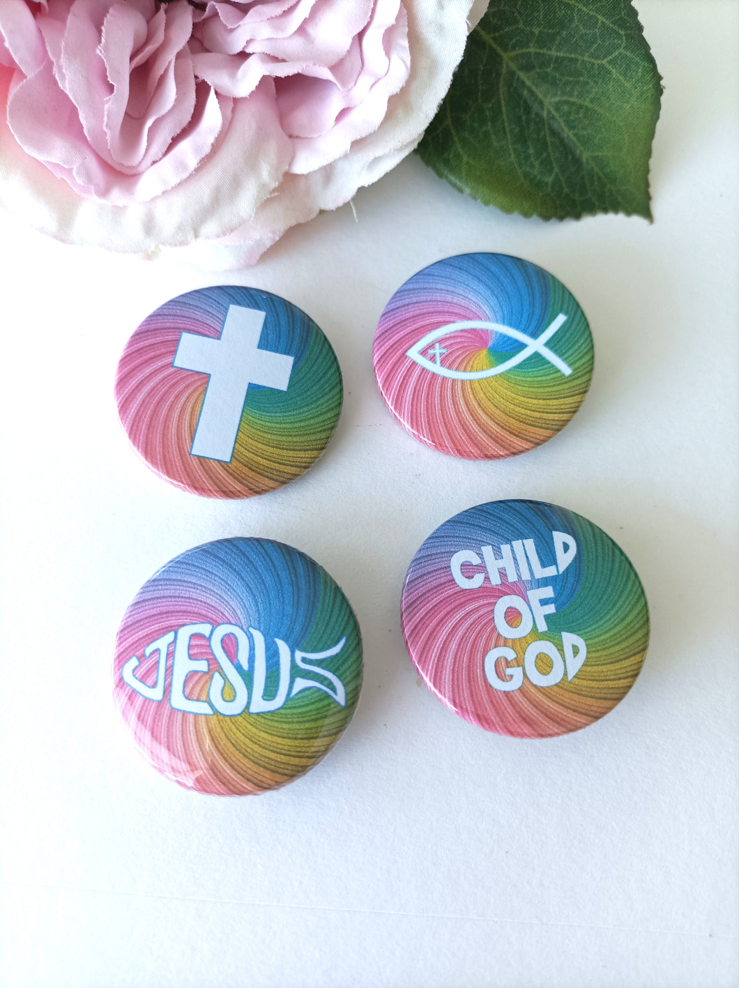 Christian Symbols Badges set of 4 Bright Rainbow - Button Badge 38mm