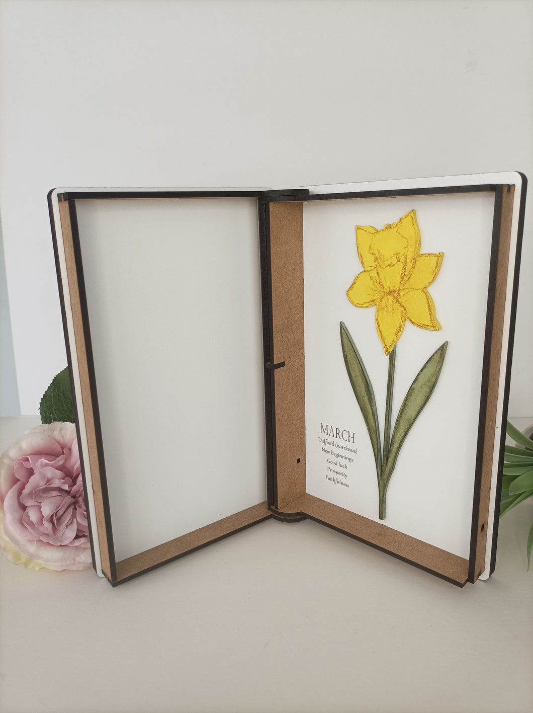Wooden Book Box Frame- Birth Month Flower Personalised gift - Mother's Day gift idea