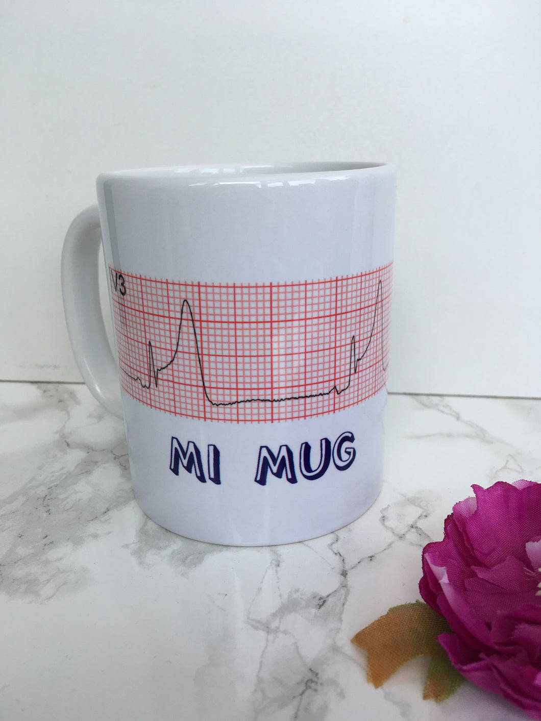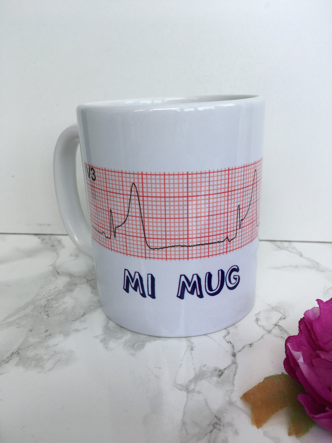MI mug with an ECG image. Myocardial infarction