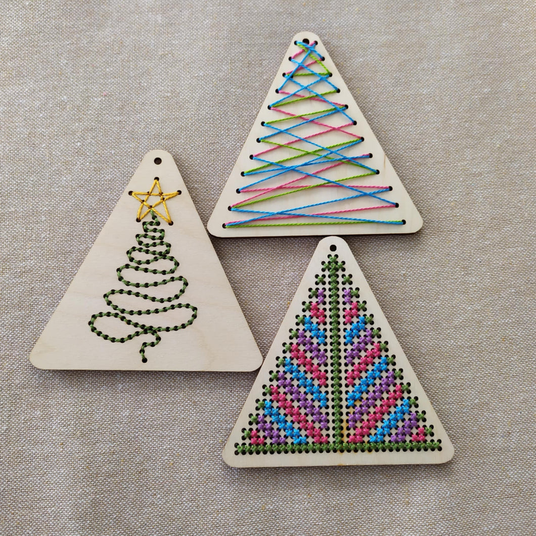 This easy and enjoyable craft project is perfect for both beginners and experienced stitchers. You’ll explore cross stitch, running stitch, and embroidery to create festive triangle decorations that look stunning on any Christmas tree.