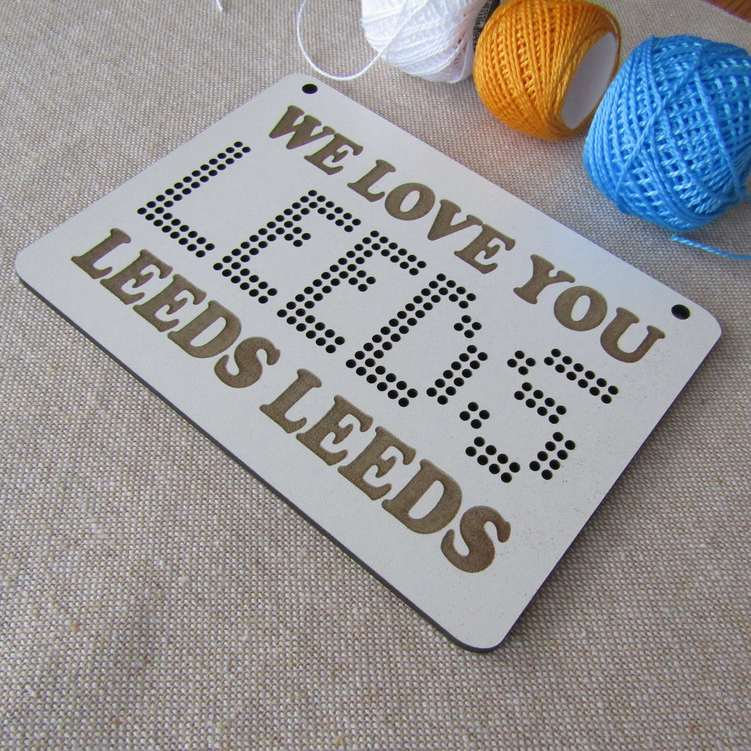 We Love You Leeds Leeds Leeds” Cross Stitch Kit – Wooden Plaque for Leeds Fans