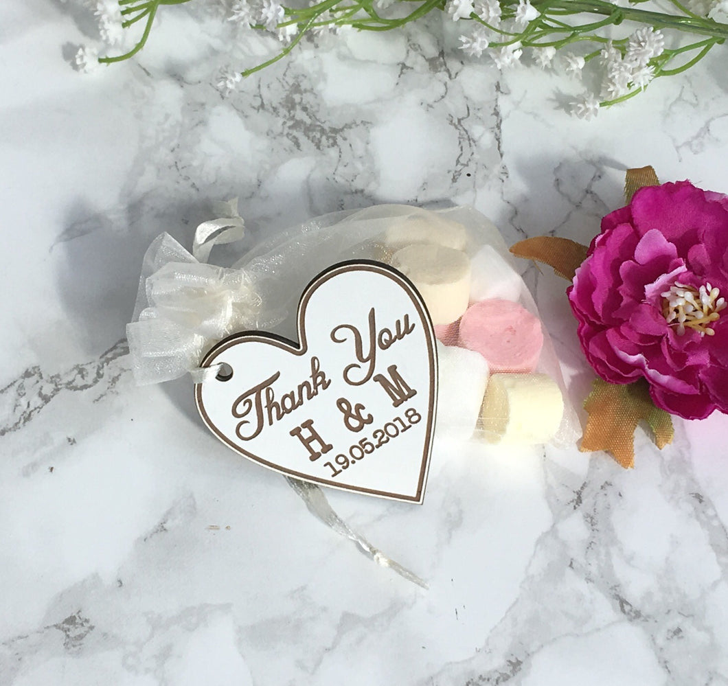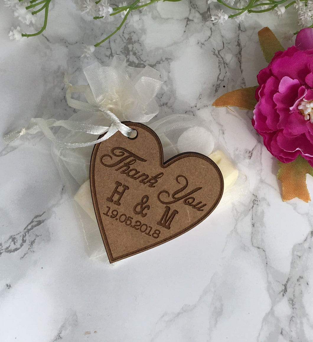 Wedding favour Tag - Heart with initials and date - Wooden wedding